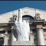 Milano’da tarihi borsa binasının önünde yer alan 11 metrelik “L.O.V.E. (2011)” isimli mermer heykeli ise sanatçının söylemlerinde ki cesur tavrının kesin kanıtı olan bir eser. Sadece orta parmağı göğe yükselen, diğerleri ise kırılmış olan bu el heykeli açık seçik bir şekilde bankacıları işaret ederken, İtalyan ekonomisine sert göndermelerde bulunuyor.